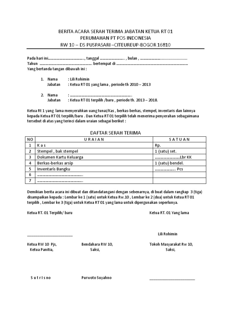 Kalibata dipimpin oleh ketua panitia ust. Surat berita acara pemilihan rt. Tanda terima penyampaian berita acara dan sertifikat rekapitulasi hasil penghitungan perolehan suara pemilihan ketua rt. Yang kedua adalah berita acara untuk serah terima hasil pekerjaan. Surat keputusan majelis syuro masjid jami nur iman.